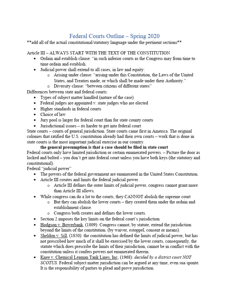 Federal Courts Outline PDF Standing (Law) Diversity Jurisdiction
