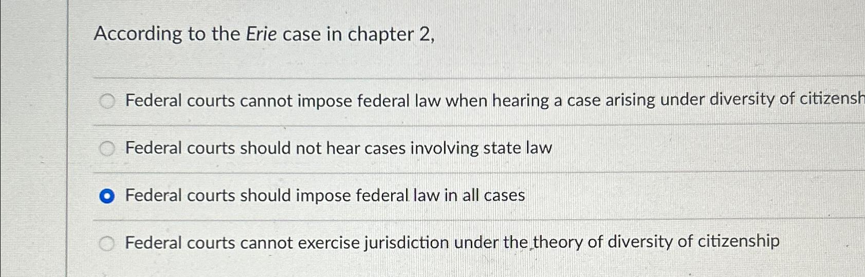 Solved According to the Erie case in chapter 2 Federal Chegg com