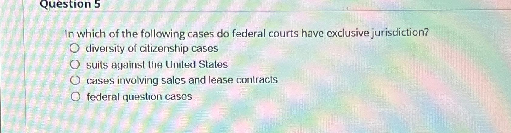 Solved Federal courts have exclusive jurisdiction only Chegg com