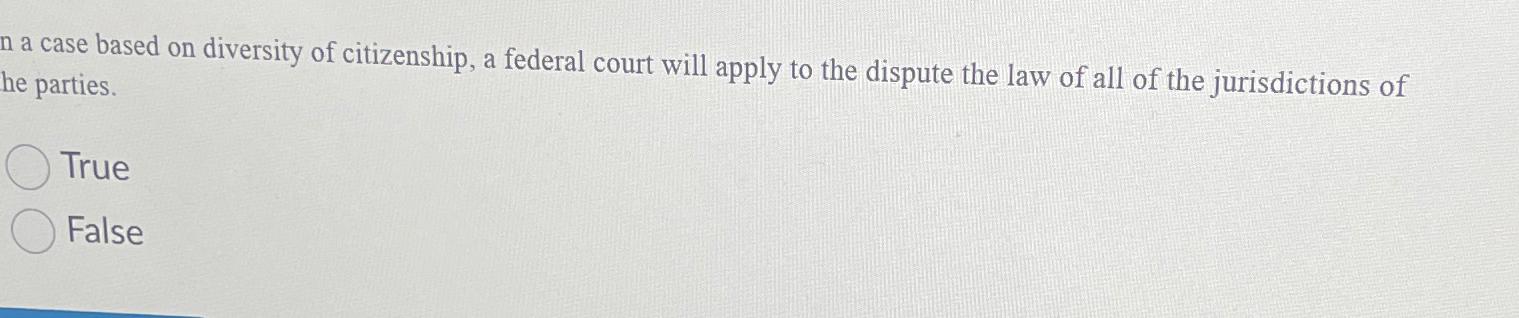 Solved n a case based on diversity of citizenship a federal Chegg com