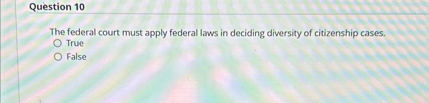 Solved Question 10The federal court must apply federal laws Chegg com
