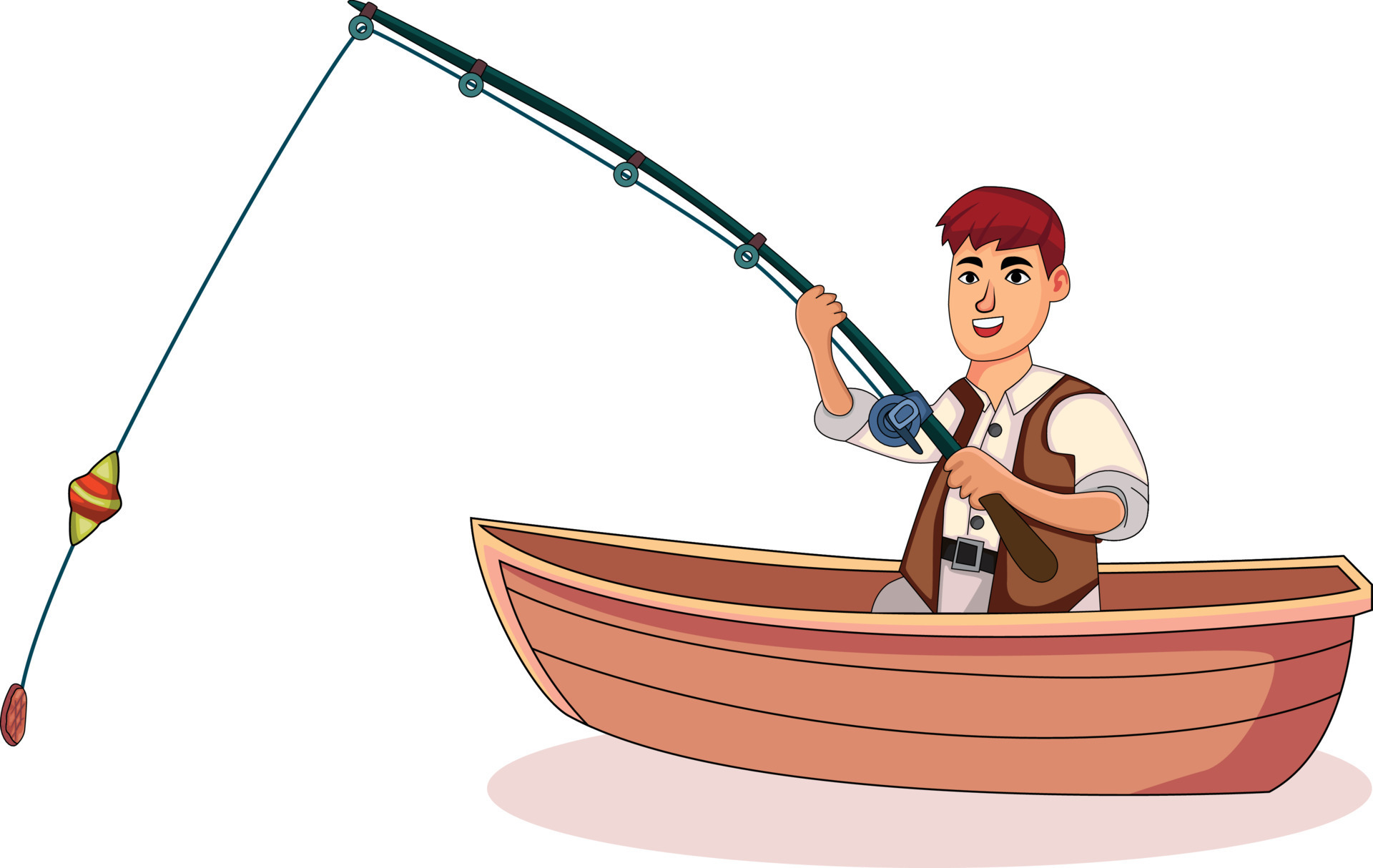 Fisherman catching fish on the boat cartoon scene 21846975 Vector Art