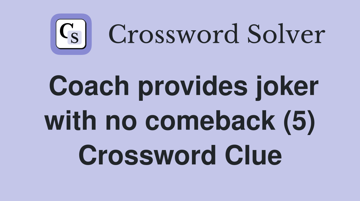 Coach provides joker with no comeback (5) Crossword Clue Answers