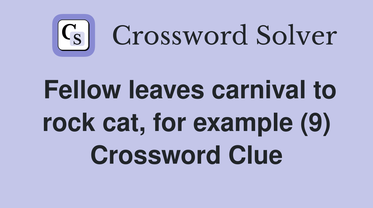 Fellow leaves carnival to rock cat for example (9) Crossword Clue