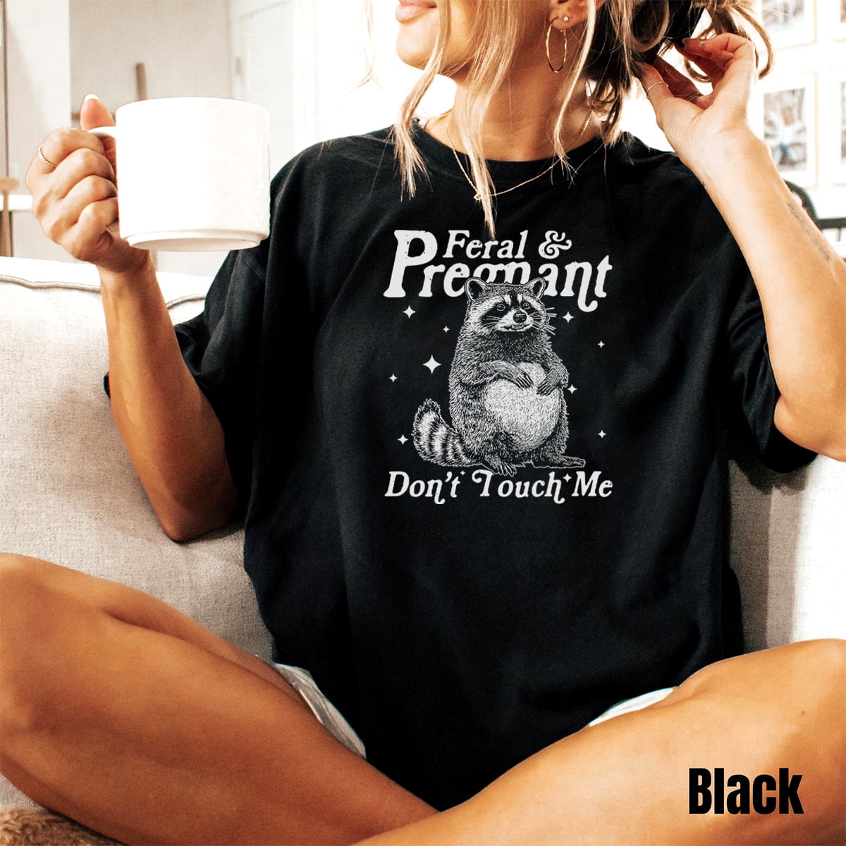 Feral Pregnant T Shirt Cute Bear Cat Graphic Tee for Fun Loving