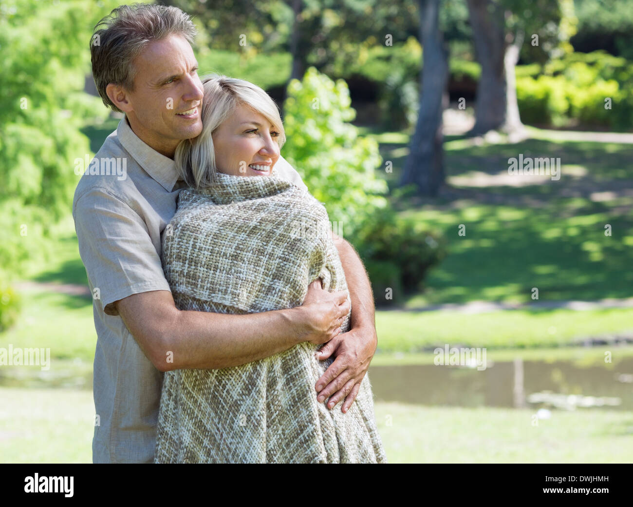 Loving couple hugging blanket hi res stock photography and images Alamy