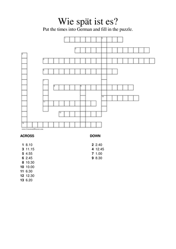 Wie spât ist es? Telling the Time crossword in German Teaching