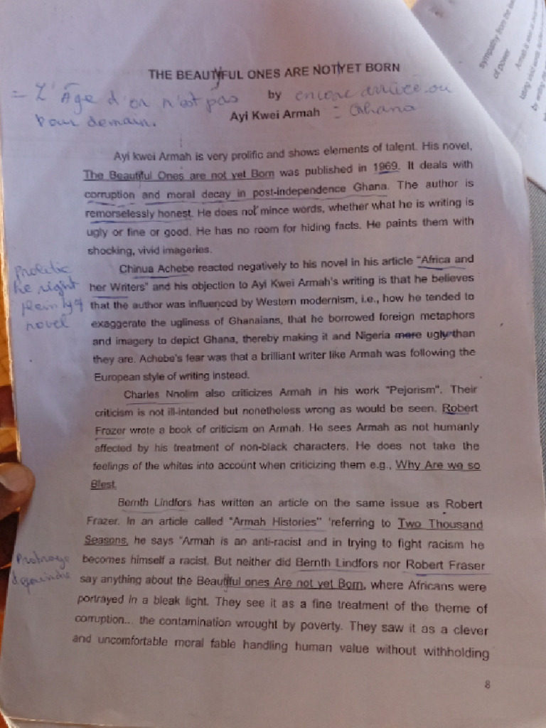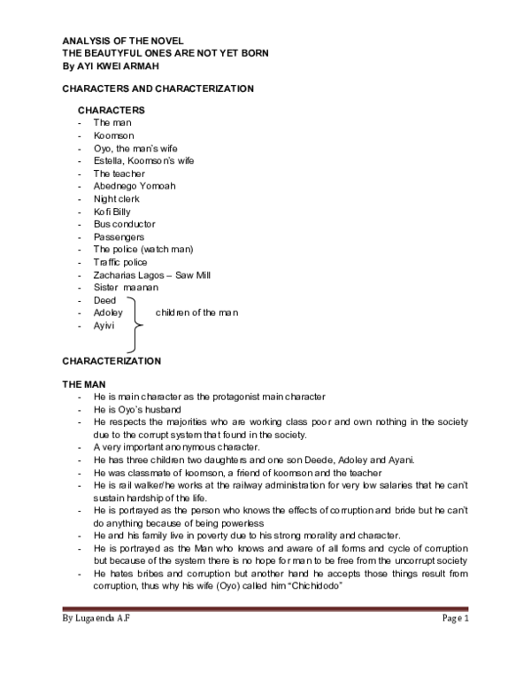(DOC) ANALYSIS OF THE NOVEL THE BEAUTYFUL ONES ARE NOT YET BORN