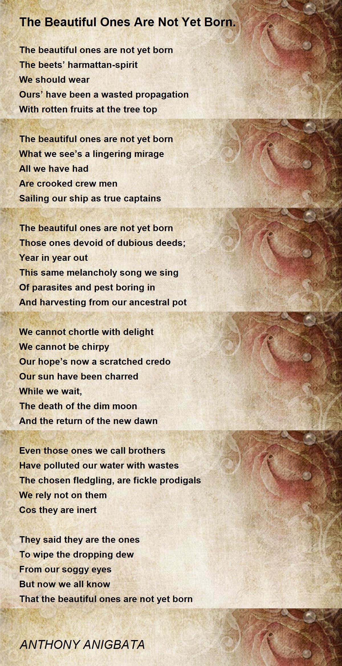 Analysis of #39 The Beautyful Ones Are Not Yet Born #39