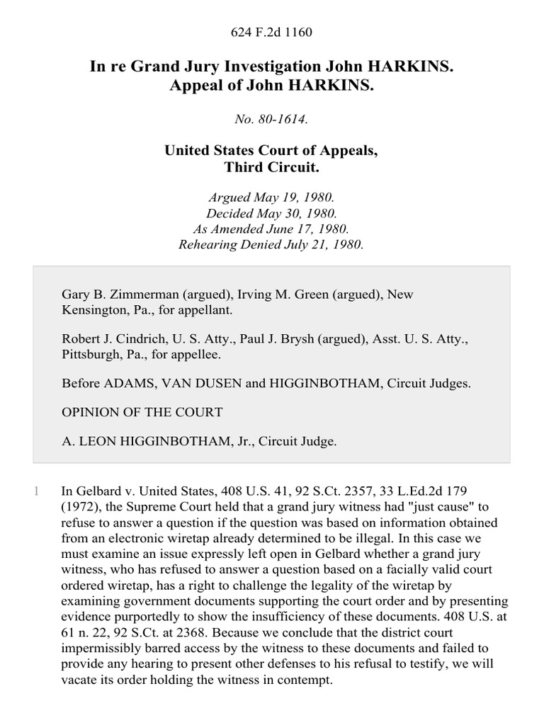 In Re Grand Jury Investigation John HARKINS Appeal of John HARKINS