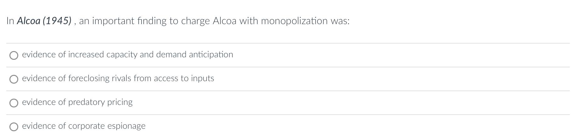 Solved In Alcoa (1945) an important finding to charge Chegg com