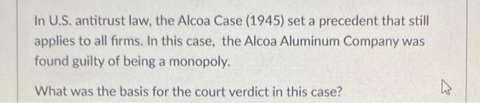 Solved In U S antitrust law the Alcoa Case (1945) set a Chegg com