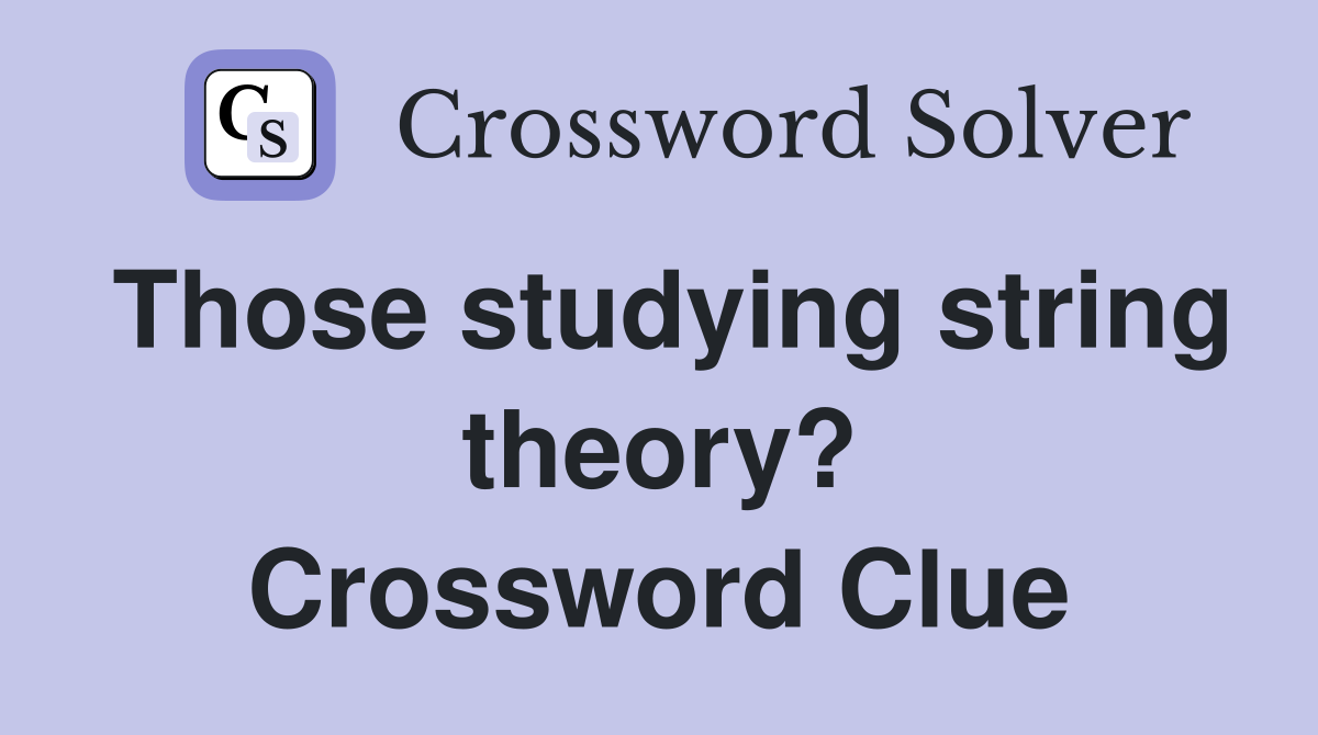 Those studying string theory? Crossword Clue Answers Crossword Solver
