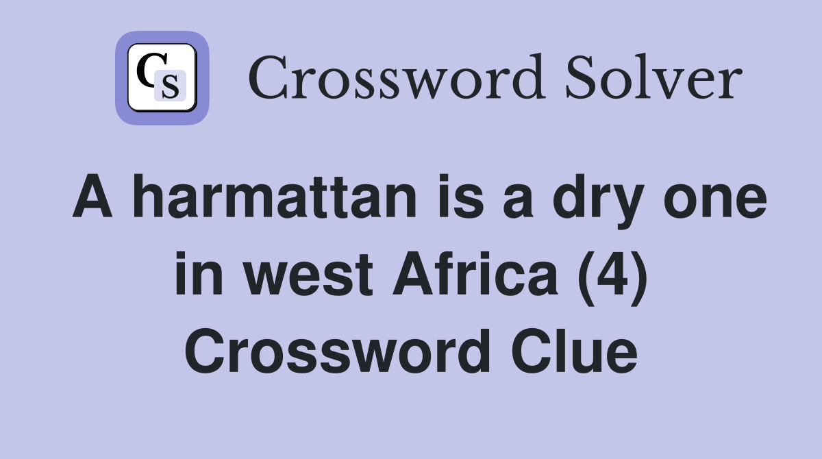 A harmattan is a dry one in west Africa (4) Crossword Clue Answers