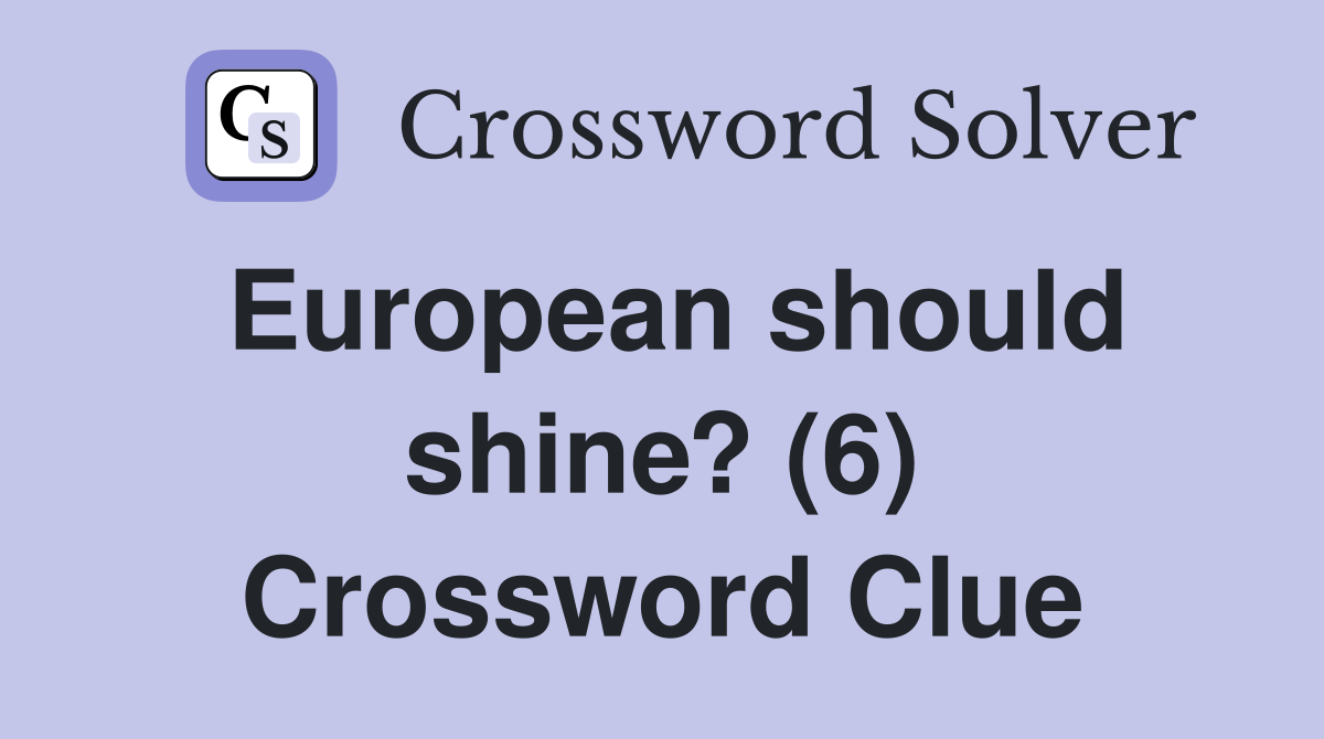 European should shine? (6) Crossword Clue Answers Crossword Solver
