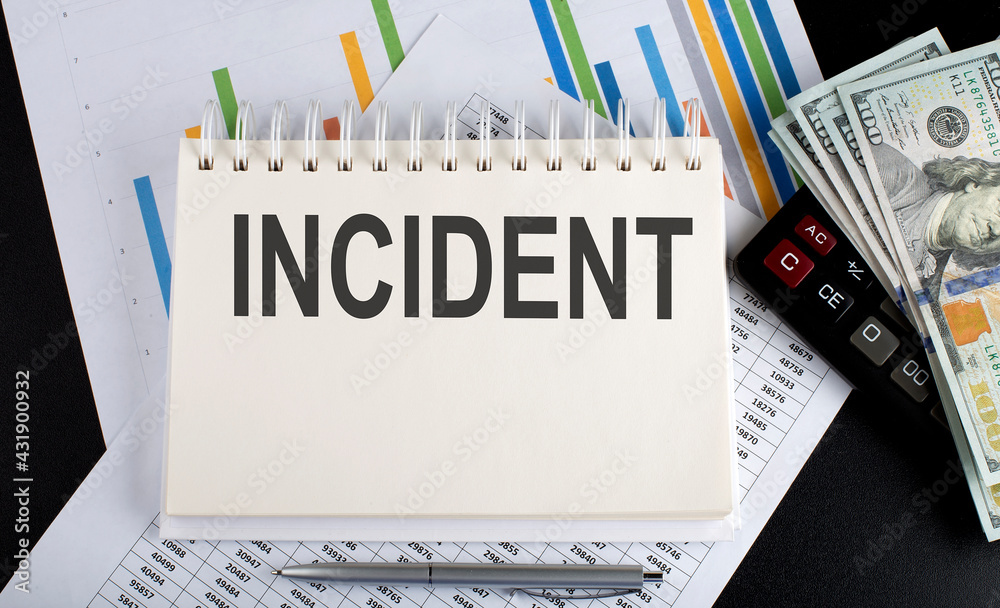 INCIDENT text written on notebook with chart calculator and dollars