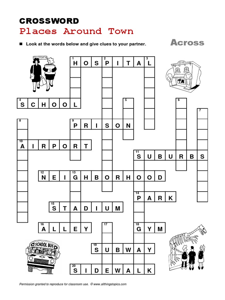 Places in Town: A Crossword Puzzle Exploring Common Locations PDF