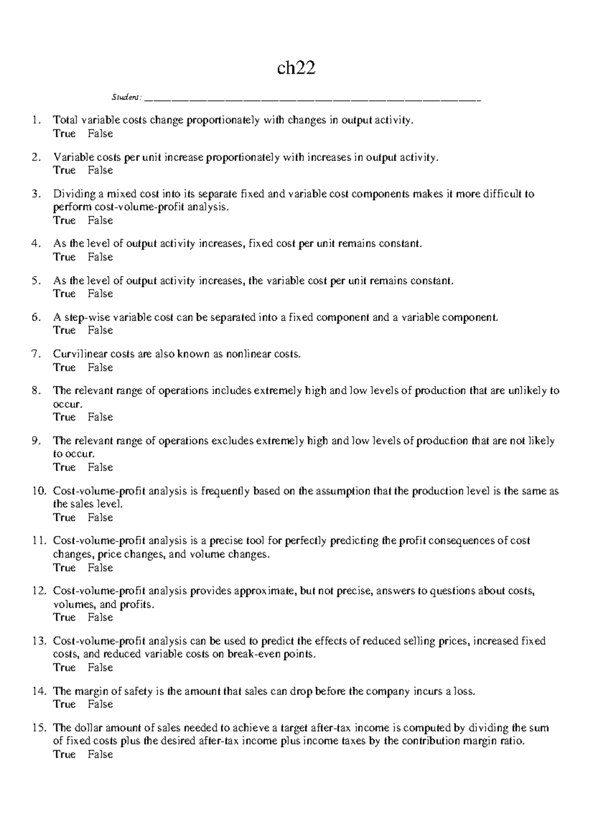 Ch22 Cost Volume Profit Analysis ch Student: Studocu