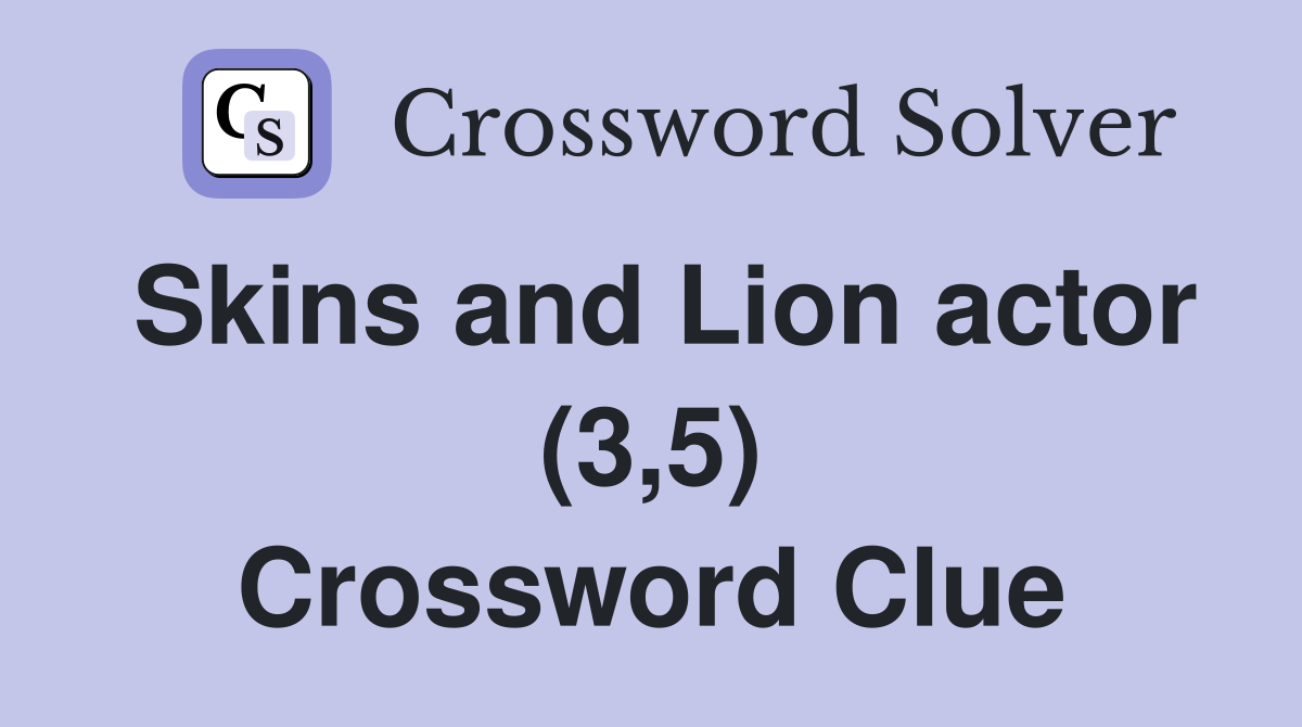 Skins and Lion actor (3 5) Crossword Clue Answers Crossword Solver