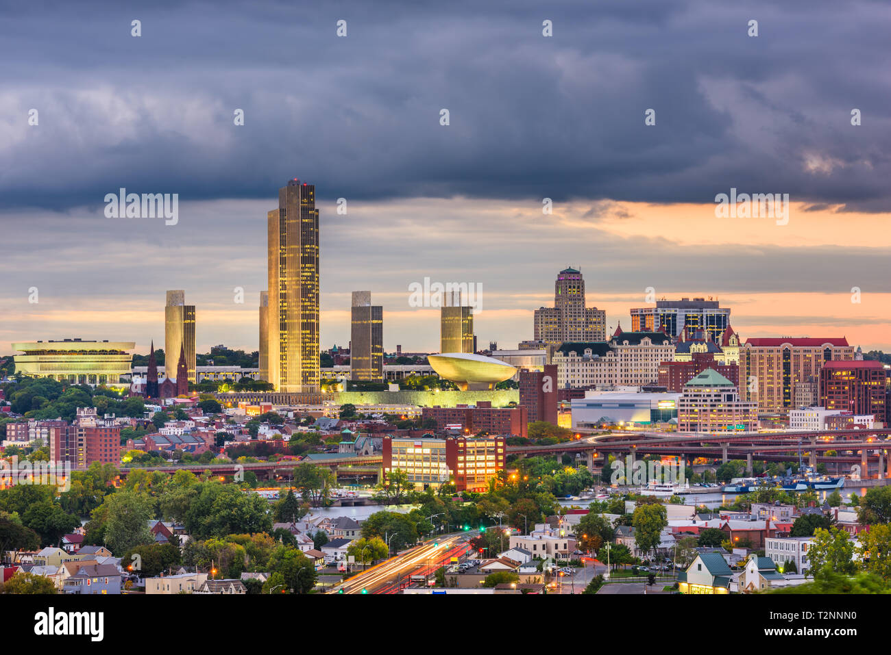 Albany New York USA downtown city skyline at dusk Stock Photo Alamy