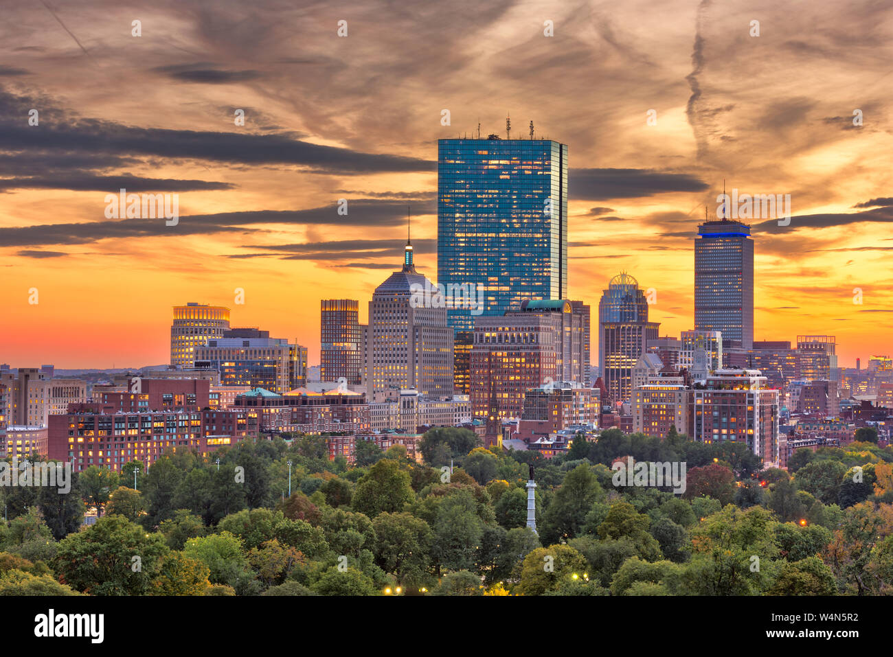 Boston buildings and Custom House Clock Tower Boston Massachusetts