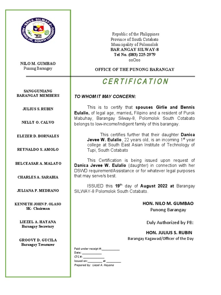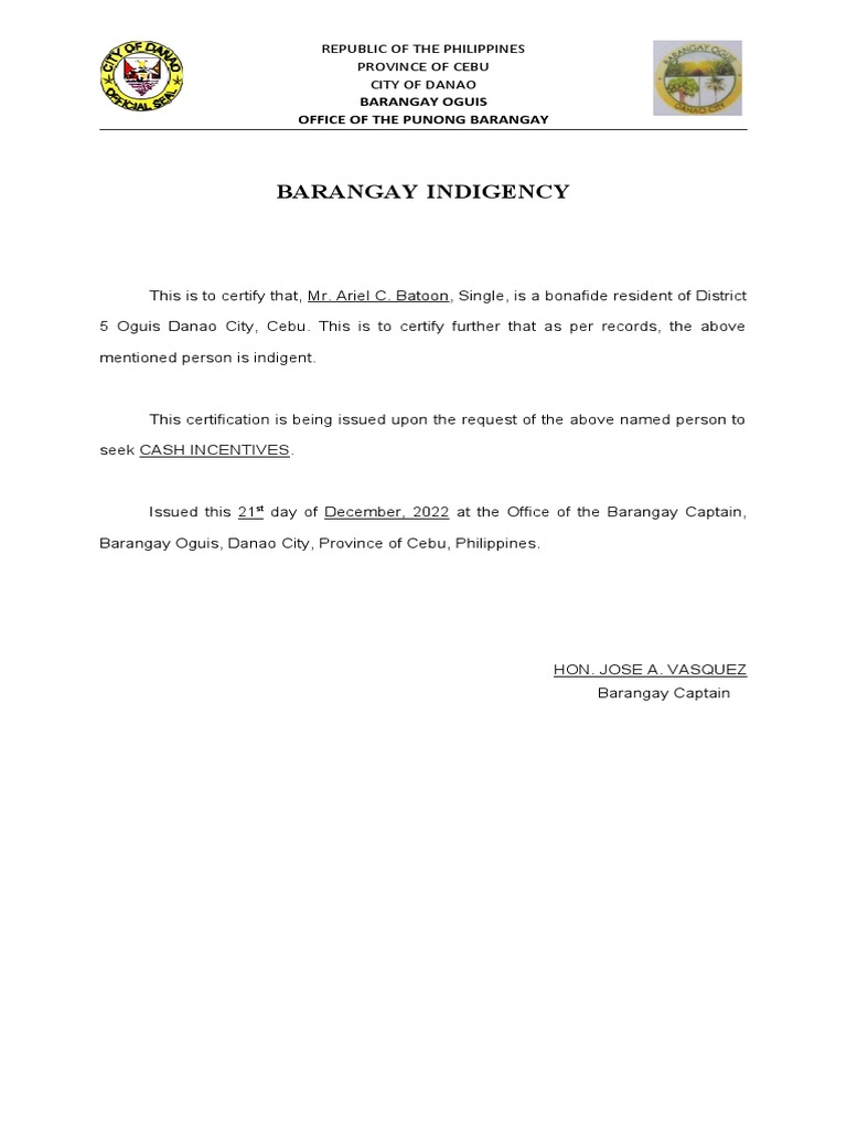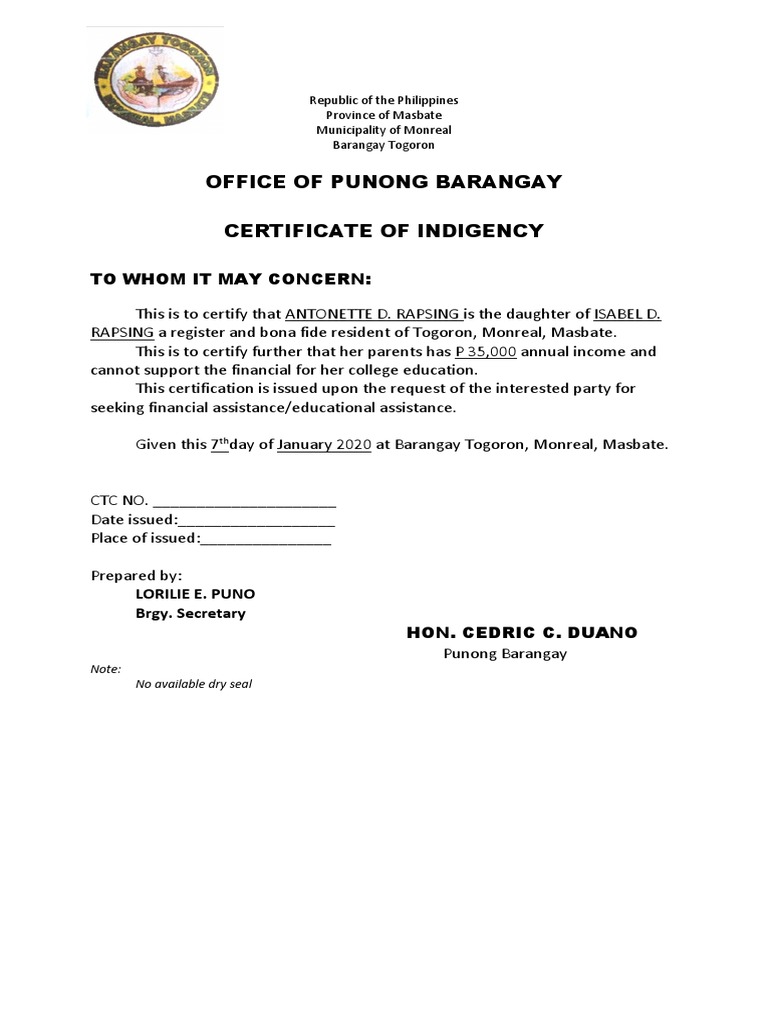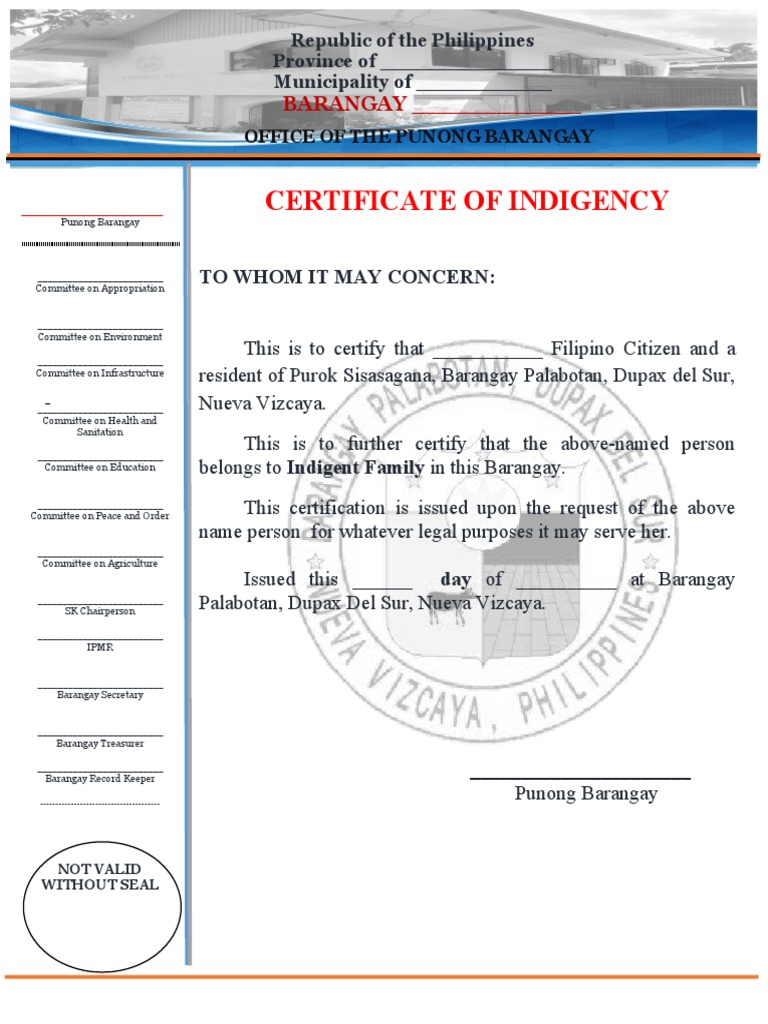Certificate Of Indigency prntbl concejomunicipaldechinu gov co