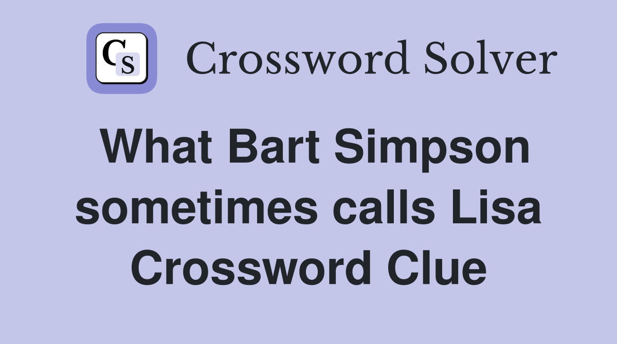 What Bart Simpson sometimes calls Lisa Crossword Clue Answers