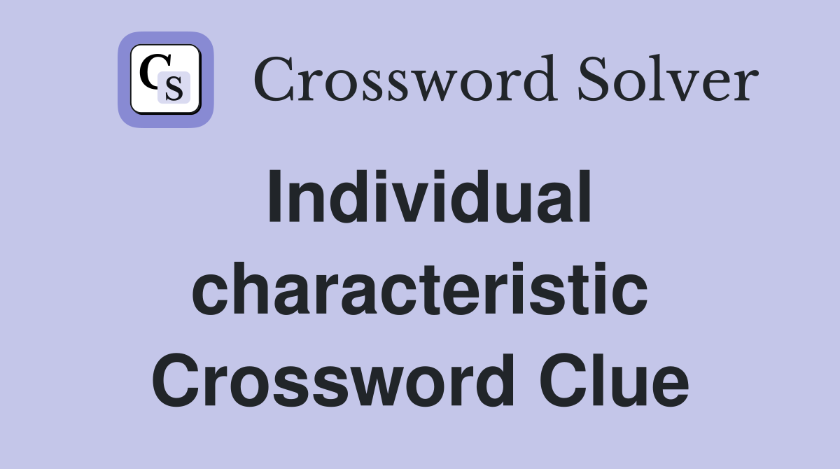 Individual characteristic Crossword Clue Answers Crossword Solver