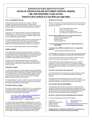 Fillable Online Notice of Certification and Settlement with Opt Out