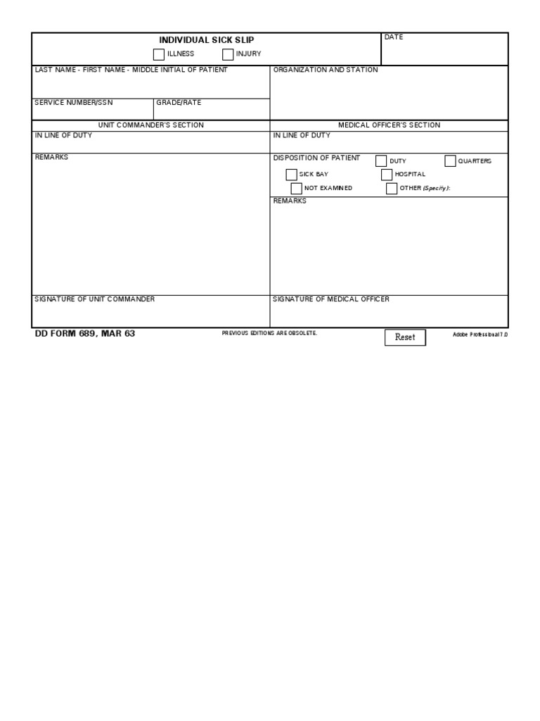 DD Form 689 Download Fillable PDF Individual Sick Slip Templateroller