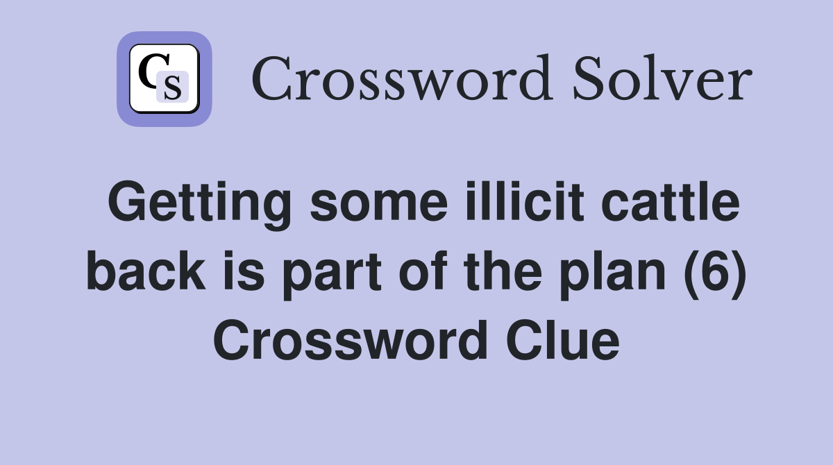 Getting some illicit cattle back is part of the plan (6) Crossword