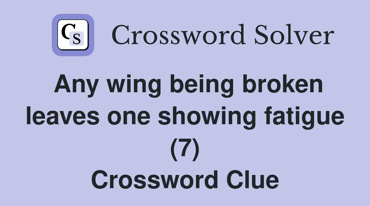 Any wing being broken leaves one showing fatigue (7) Crossword Clue