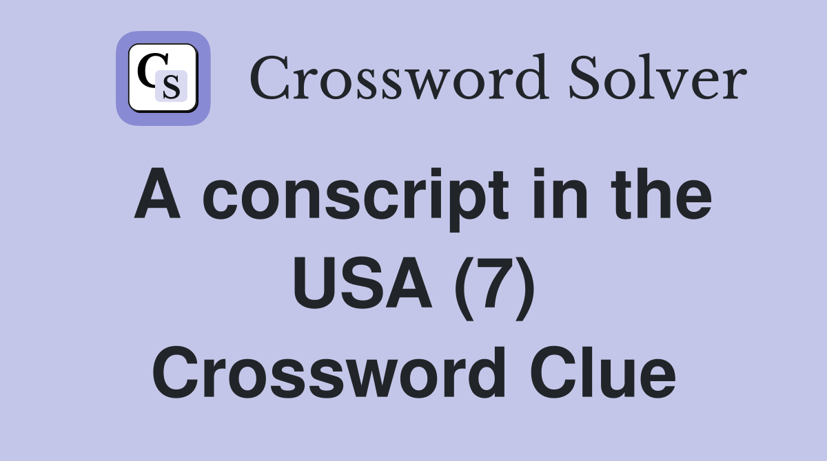 A conscript in the USA (7) Crossword Clue Answers Crossword Solver