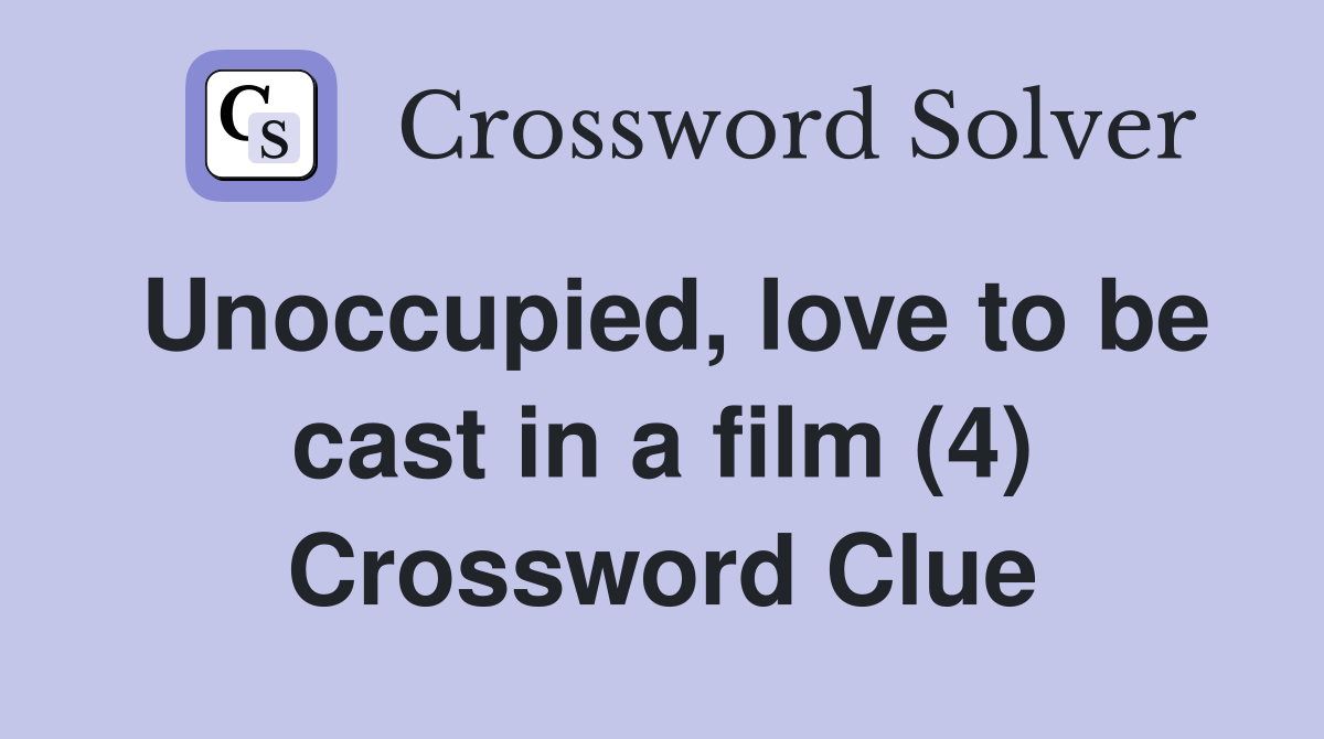 Unoccupied love to be cast in a film (4) Crossword Clue Answers