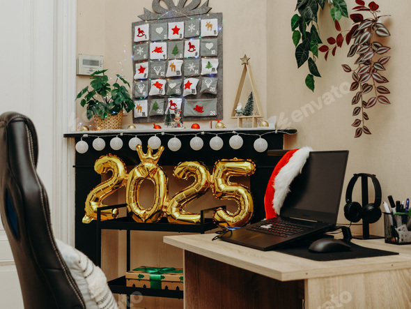 Gold Inflatable Numbers 2025 Gift And Advent Calendar In Bedroom Office