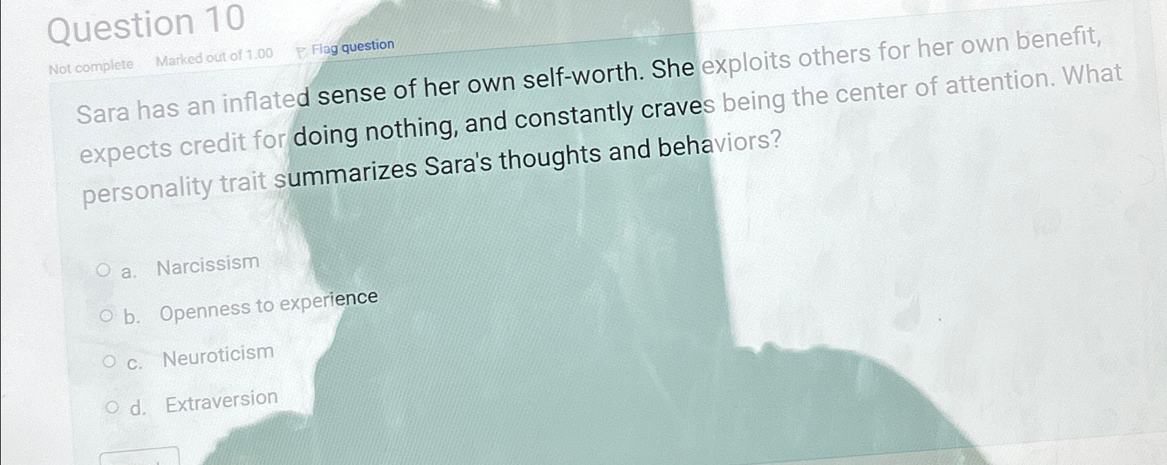 Solved Question 10Sara has an inflated sense of her own Chegg com