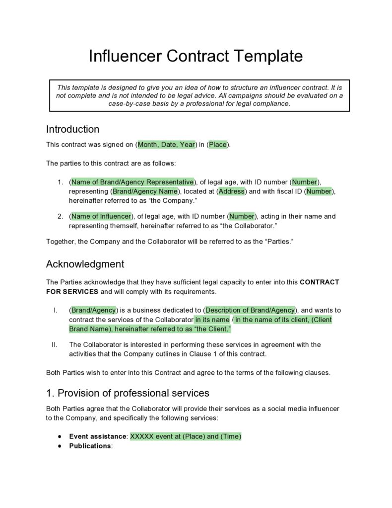 Influencer Marketing Contract Template