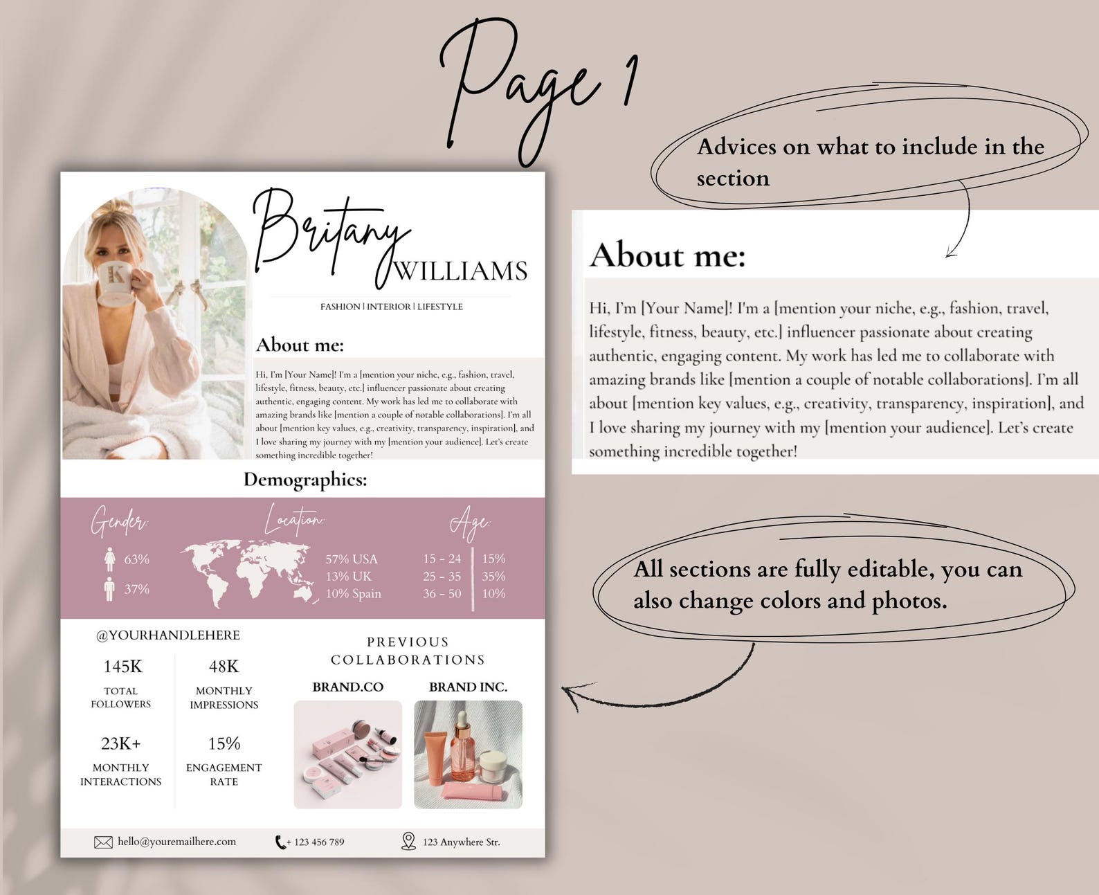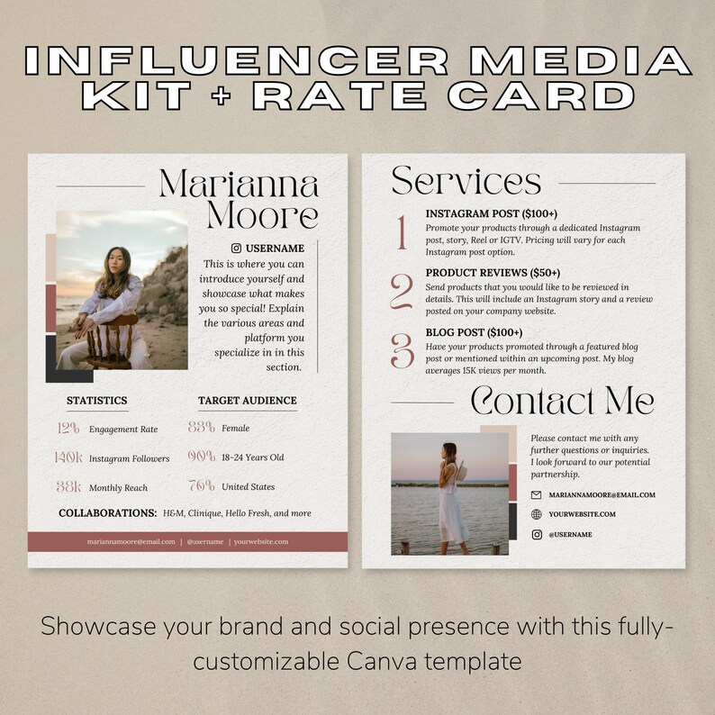 MEDIA KIT Rate Card Template for Instagram Tiktok Influencers and