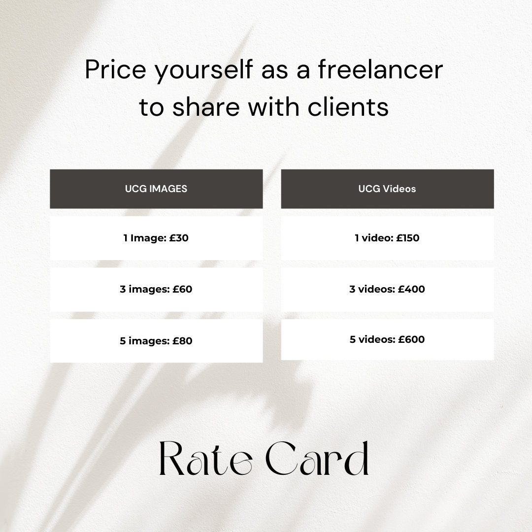 Influencer Media Kit and Rate Card Content Creator Rate Sheet UGC Rate