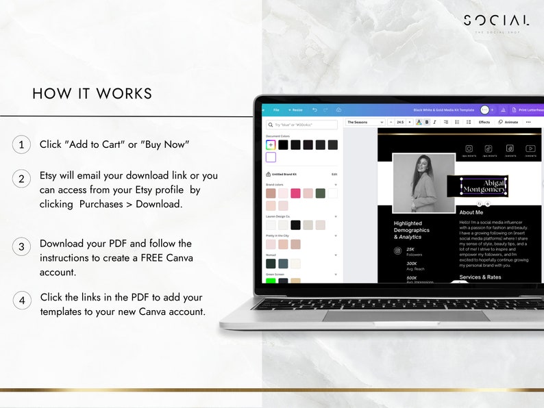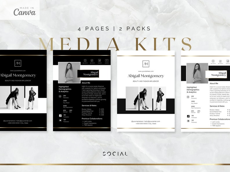 2 Pack BW Gold Media Kit Canva Template Instagram Media Kit