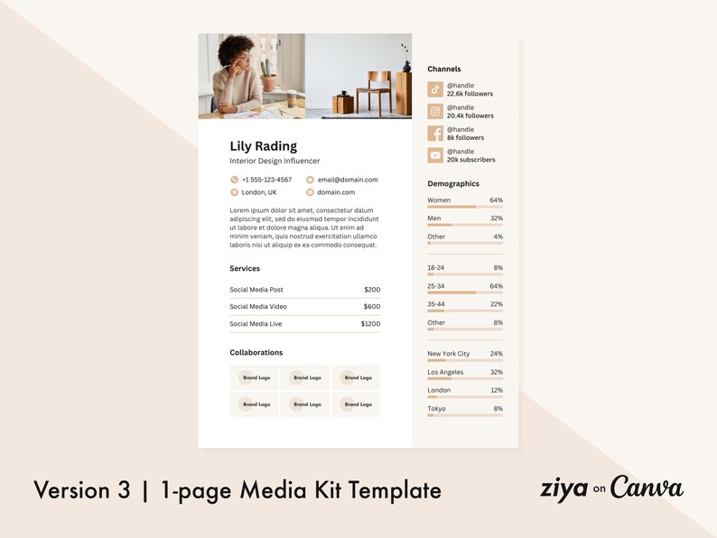 2 Page Media Kit Canva Template Instagram Media Kit Influencer Rate
