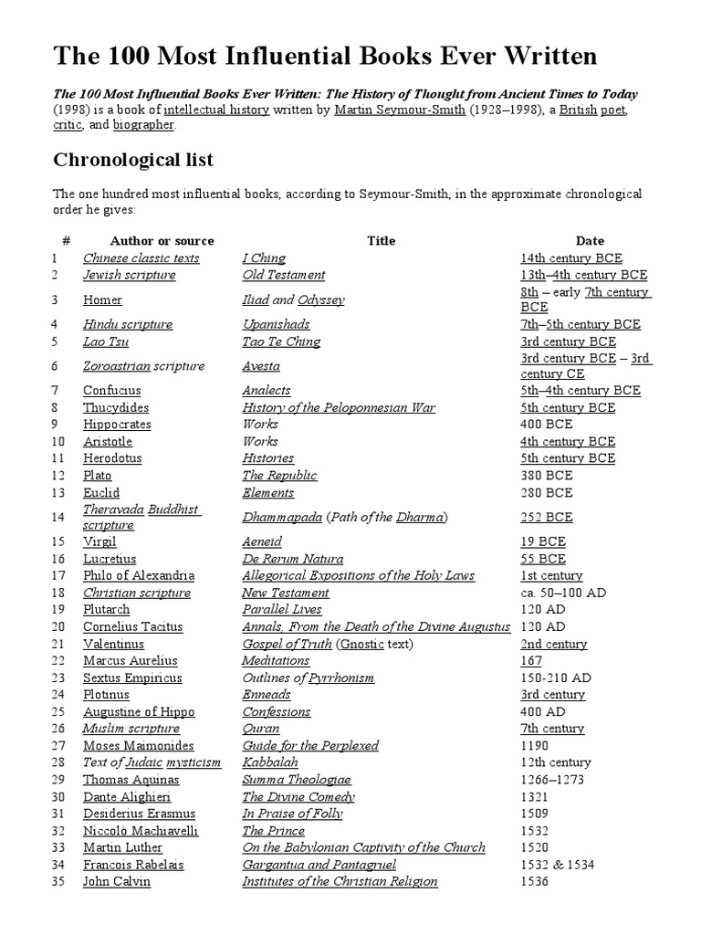 The 100 Most Influential Books Ever Written PDF The World As Will