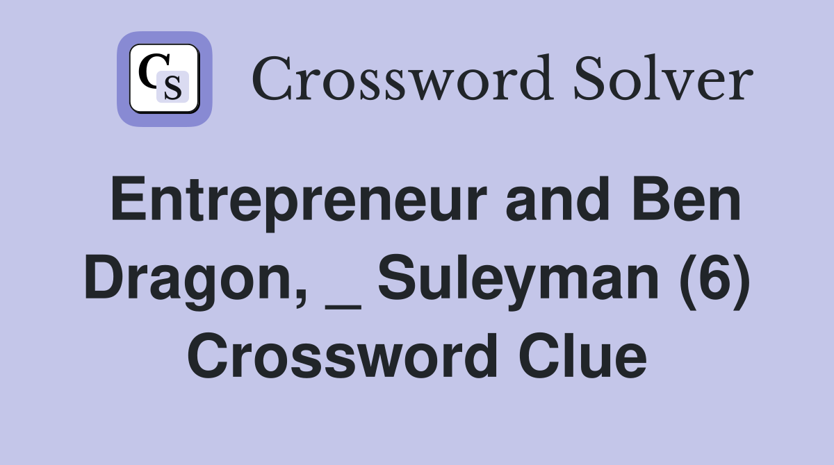 Entrepreneur and Ben Dragon Suleyman (6) Crossword Clue Answers