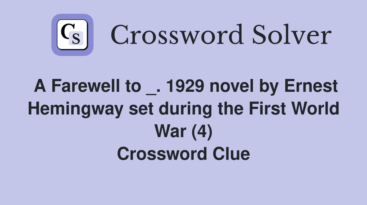 A Farewell to 1929 Hemingway novel (4) Crossword Clue Answers
