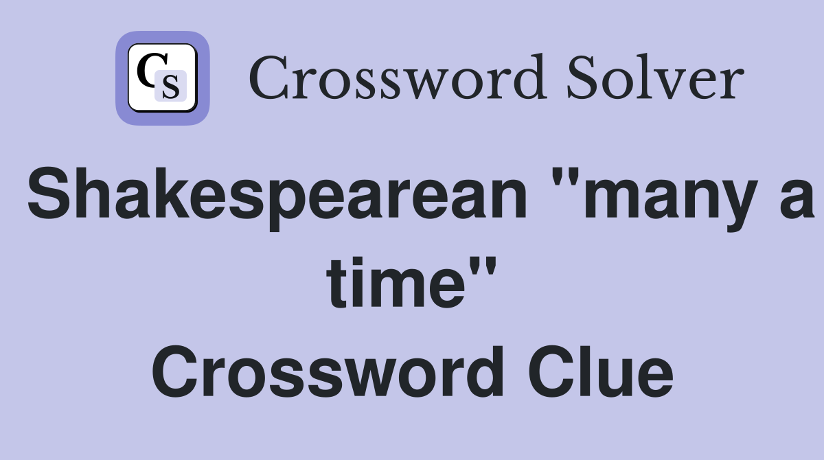 Shakespearean quot many a time quot Crossword Clue Answers Crossword Solver