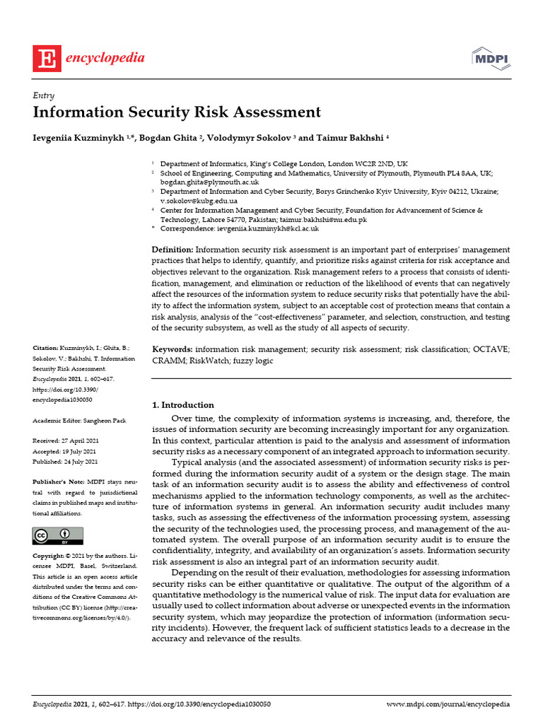 Information Security Risk Assessment PDF Risk Vulnerability