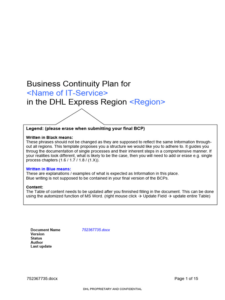Information Technology Business Continuity Plan Template