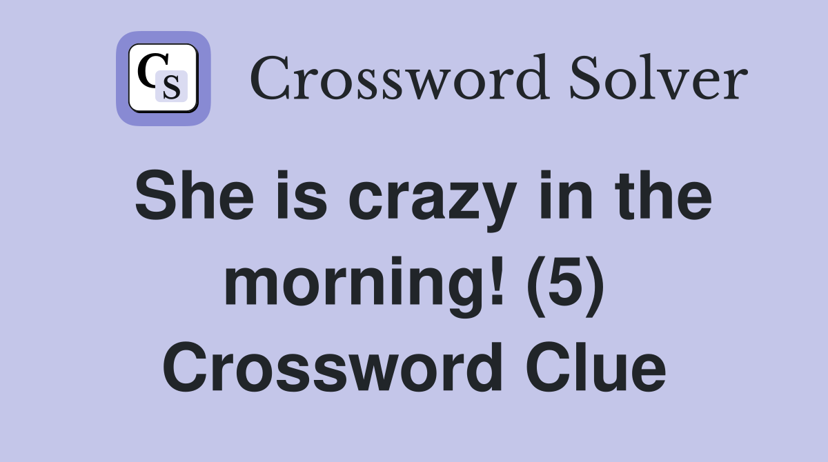 She is crazy in the morning (5) Crossword Clue Answers Crossword
