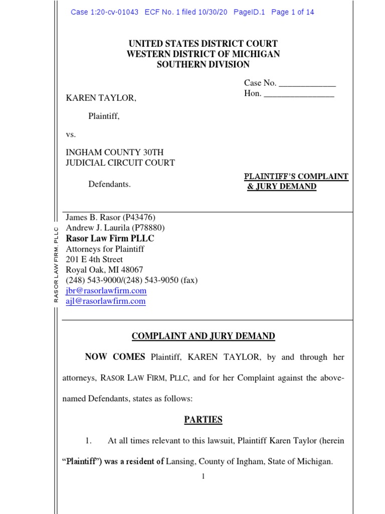 Ingham County 30th Circuit Court Racial Discrimination Lawsuit PDF