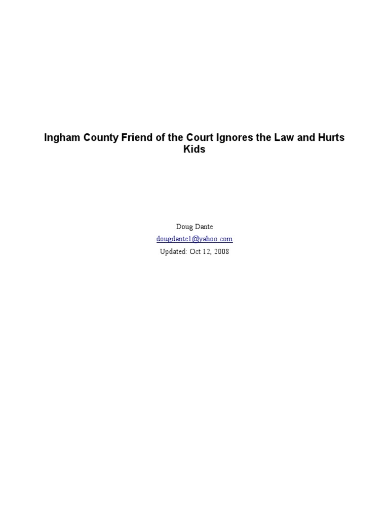 Ingham County Friend of The Court Is Ignoring The Law and Hurting Kids